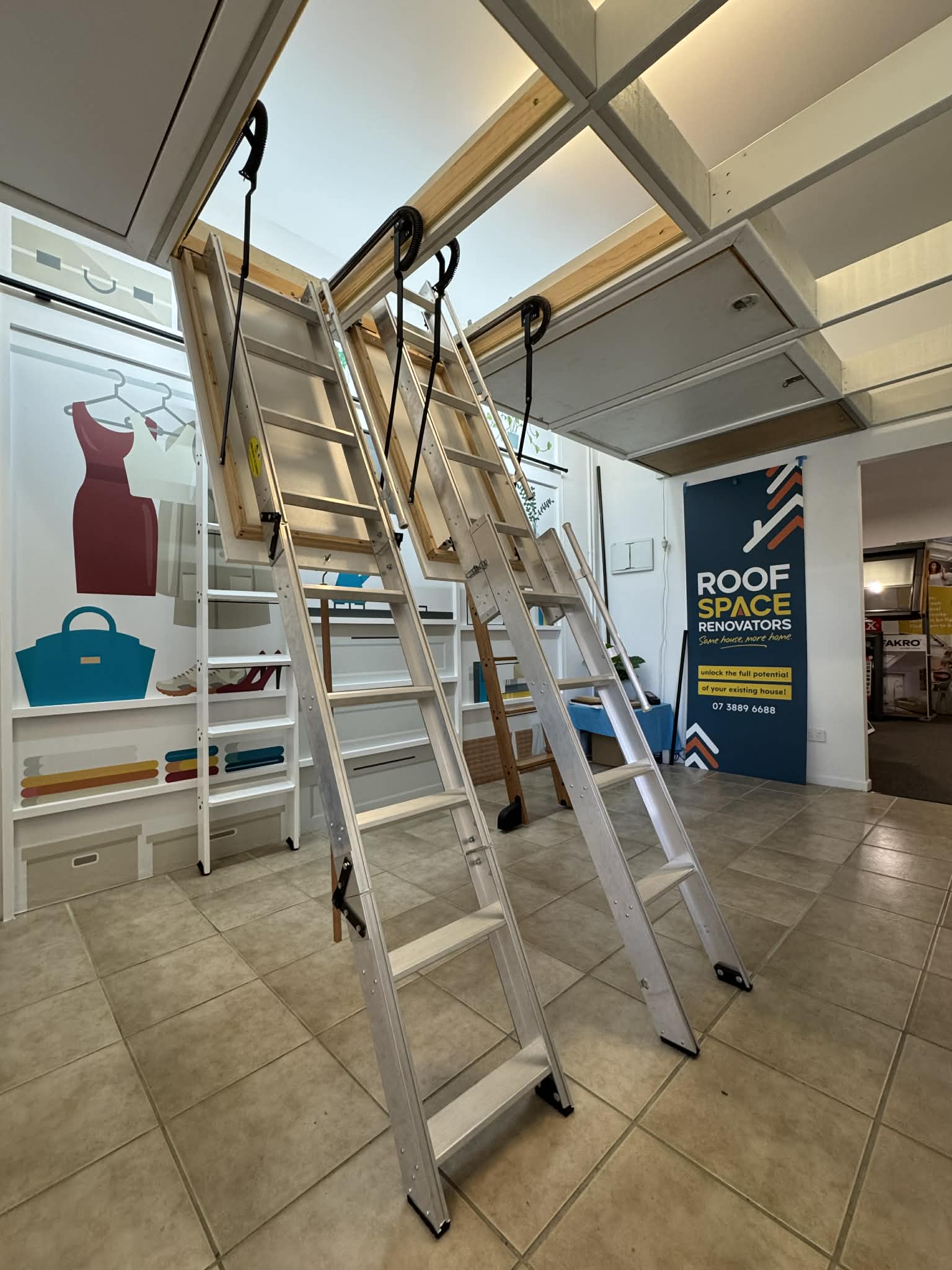 Our showroom is designed to help you confidently choose the right ladder for your space — whether you’re accessing a loft, mezzanine or roof space.